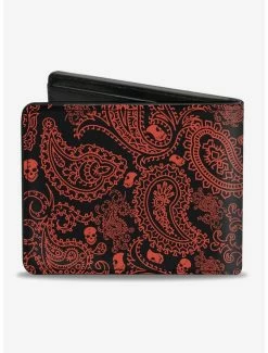 Promo ๐ Bandana Skull Print Bifold Wallet Black Orange ๐