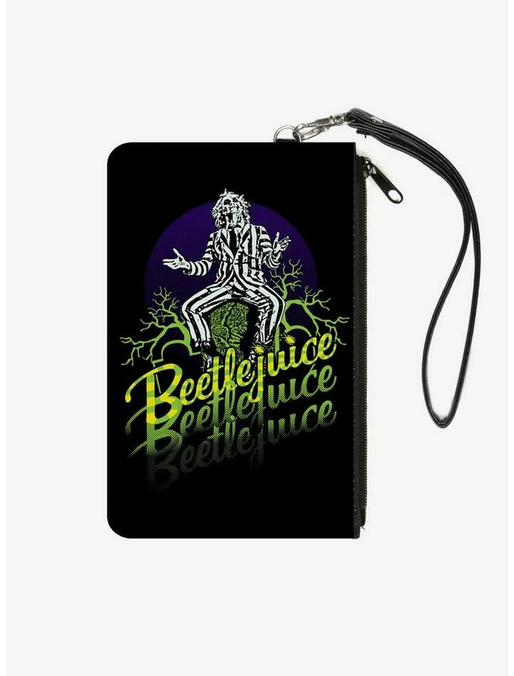 Cheapest 🤩 Beetlejuice Sitting on Tombstone Pose Zip Clutch Canvas Wallet 👍