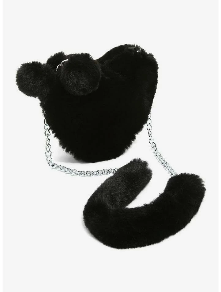 Cross our hearts, this bag is definitely made for you! Fluff up your look with this crossbody bag, featuring a fuzzy heart-shaped body, a removable crossbody chain strap with a fuzzy shoulder pad and two decorative fuzzy black poms. Top zipper closure and interior drop pocket.