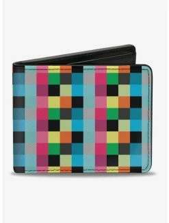 Deals 👍 Checker Print Bifold Wallet Bright Pastel 🤩