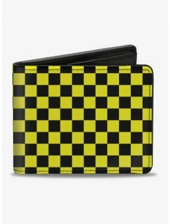 Buy ๐ Checker Print Bifold Wallet Neon Yellow ๐งจ