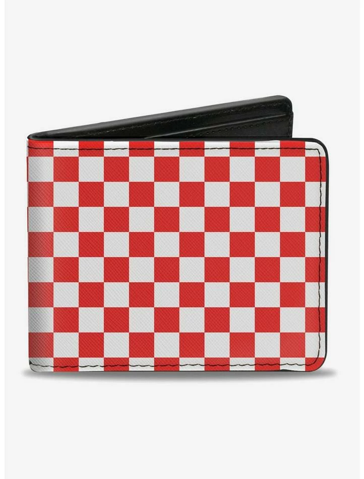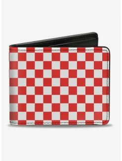 Discount 😀 Checker Print Bifold Wallet Red White ❤️