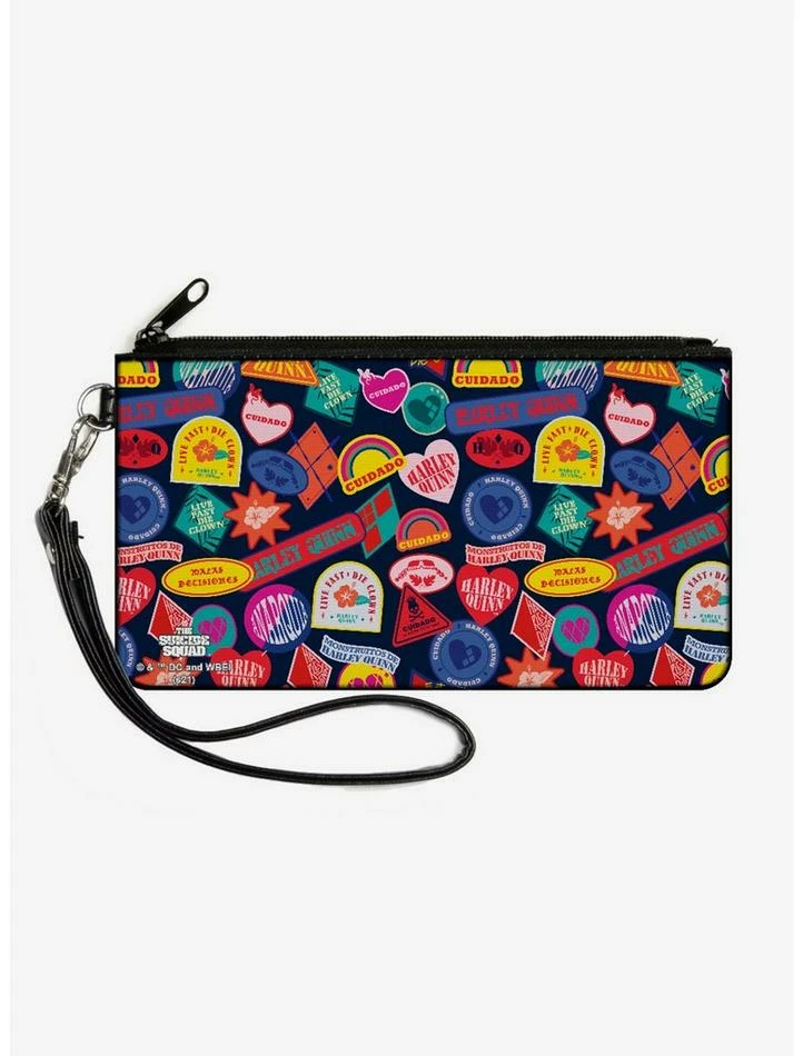 New 🎉 DC Comics The Suicide Squad Harley Quinn Badges Canvas Zip Clutch Wallet 👏