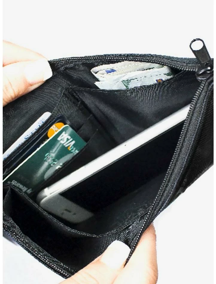 This is your classic clutch wallet, great for when you don’t want to carry around a bulky purse. Made from high-density woven nylon, measuring 8 x 5 inches, with 4 card slots, a billfold, and a pouch.