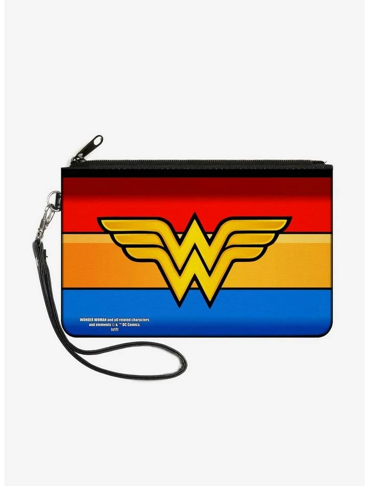 Deals โ๏ธ DC Comics Wonder ๐ฉ Woman Logo Stripe Wallet Canvas Zip Clutch ๐