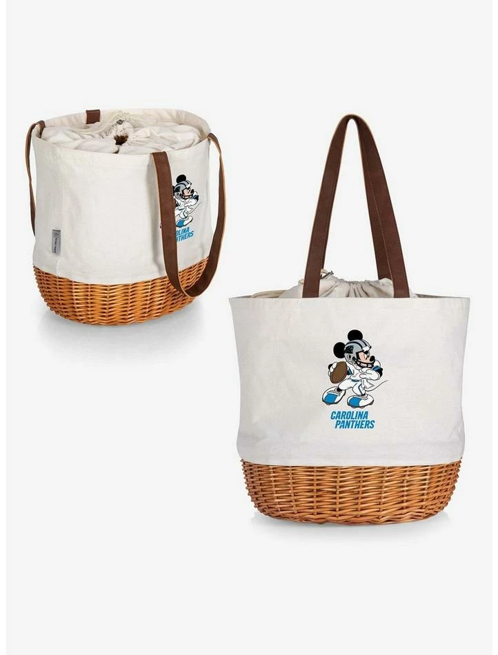 Coupon ✔️ Disney Mickey Mouse NFL Carolina Panthers Canvas Willow Basket Tote 😀