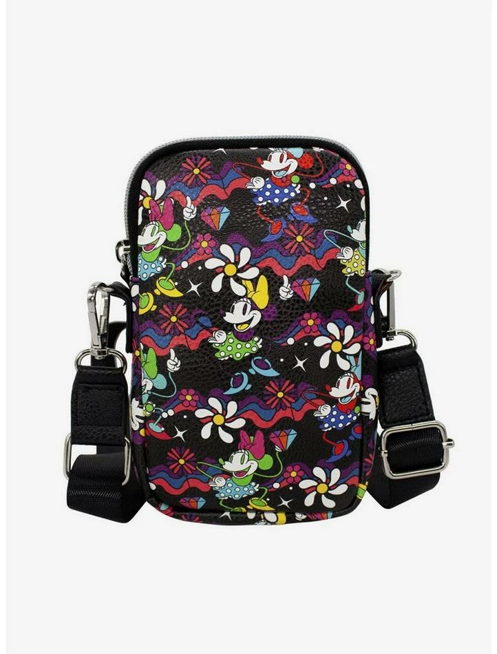 You are going to love this small cell phone crossbody bag featuring Minnie Mouse dancing poses all over print! Stylish and sleek this cell phone holder wallet bag is made from premium vegan leather. It measures 7.5 x 4.5 x 2.0 Inches and features 1 compartment with space to carry all your important things including cell phone, wallet, keys, etc. The gorgeous artwork is applied using the latest printing technology so it will hold up well over time. This product is made by Buckle-Down and is Officially Licensed by Disney.