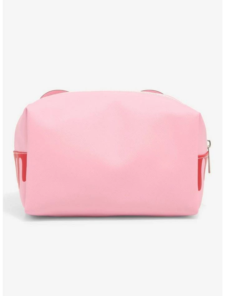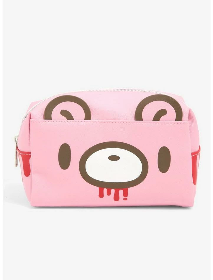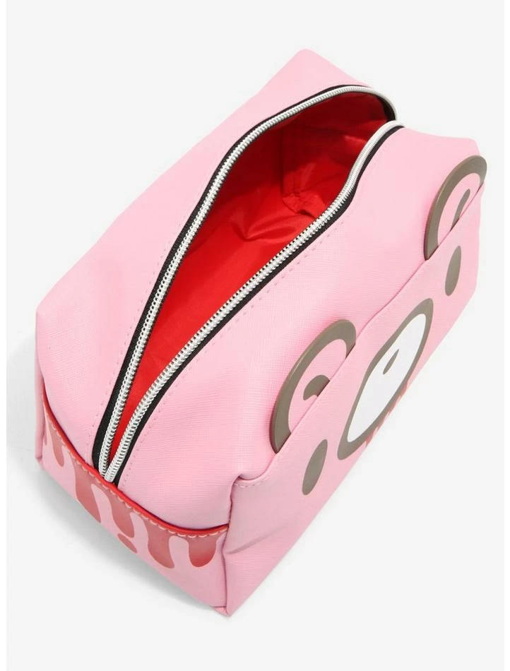 Gloomy Bear may not be the best at cuddling, but he sure knows how to keep all of your beauty essentials safe! This pink makeup bag features the Naughty Grizzly’s face with blood dripping from his mouth. Comes with appliquΓ© ears and a top zipper closure.