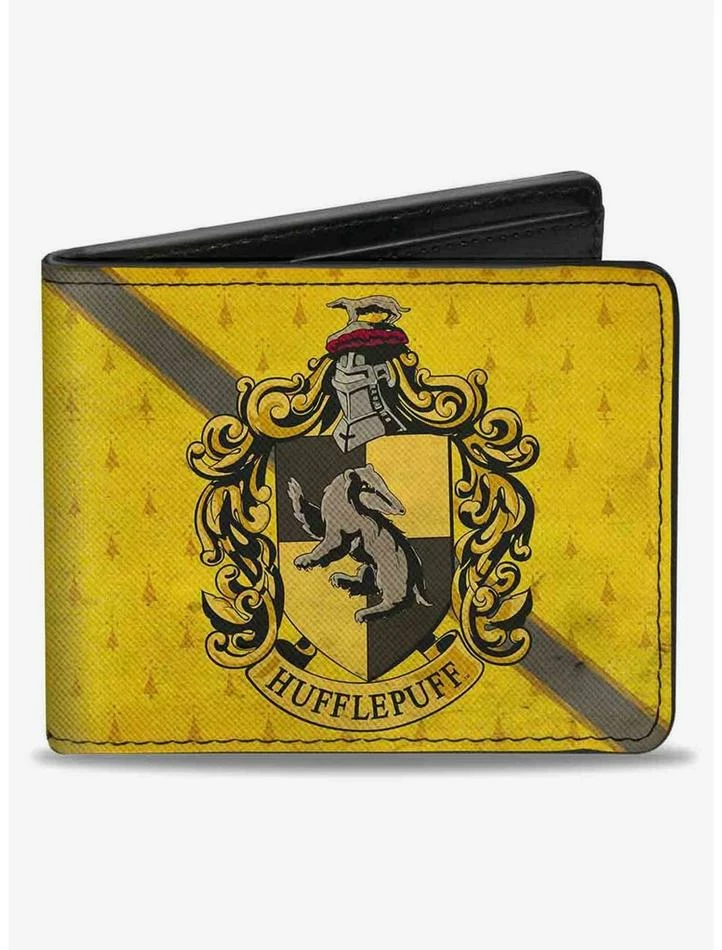 Promo ๐คฉ Harry Potter Hufflepuff Crest Stripe Weathered Bifold Wallet ๐ฅฐ
