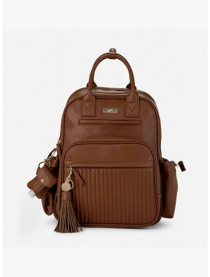 Luxurious quilted stitching, an additional interior pocket, and an empty hand sanitizer bottle with matching storage case elevate our Million Pockets Deluxe Backpack above and BEYOND! 8 exterior pockets and two main zippered compartments featuring a fabulous dual design. The roomy interior of this deluxe upgraded bag boasts 17 pockets. There is literally a spot for everything, including a padded pocket that can safely store a 15-inch laptop. Superior organization, ultra-supple vegan leather, comfortable straps, handy stroller attachments, durable all-metal hardware, memory foam changing pad, and pockets galore make our Million Pockets Deluxe Backpack one in a million! Light colored lining with silver ion treated interior resists bacteria, mold and mildew. Highly stain resistant vegan leather exterior, spills wipe right off.