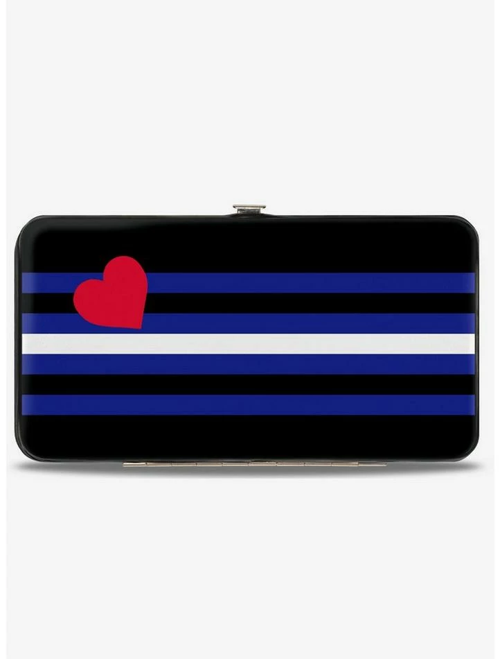 Stylish and sleek, this hinged wallet is made from vegan leather and stainless steel. It features 2 billfolds, 4 card slots, and a windowed ID holder.ย
