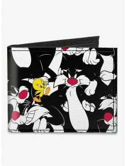 Cheap ✔️ Looney Tunes Sylvester and Tweety Poses Scattered Canvas Bifold Wallet ⌛