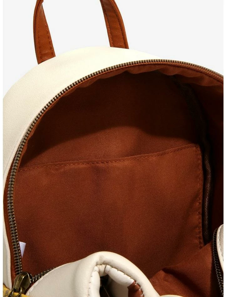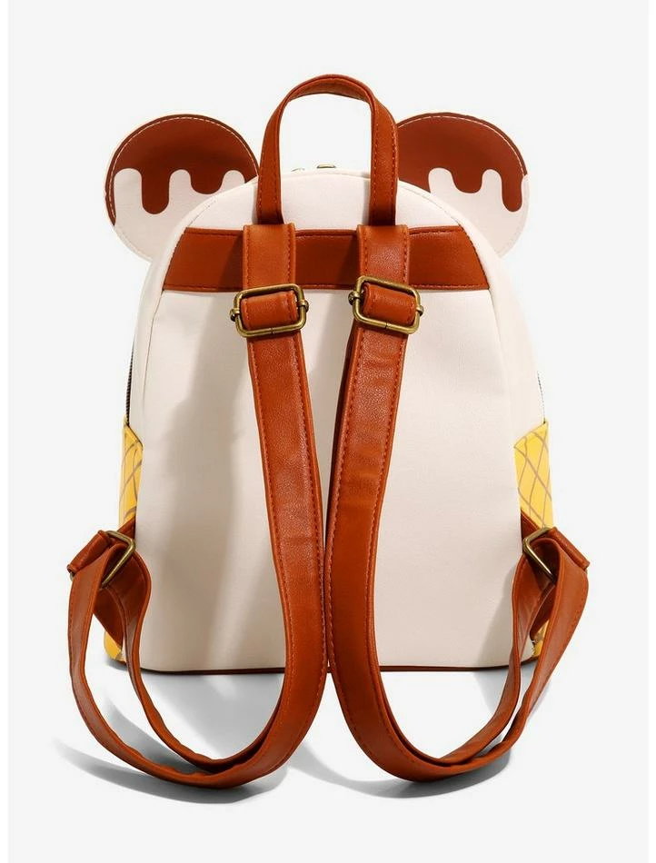 Time for a treat, oh boy! Carry your stuff in this super sweet mini backpack from Disney and Loungefly featuring an ice cream cone design with ears and image of Mickey Mouse holding an ice cream cone. Inside has brown lining and a drop pocket.