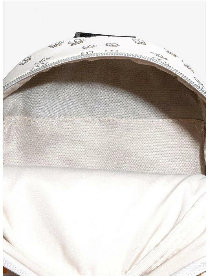 ย Oh bother! Hide your hunny in this mini backpack fromย Winnie the Poohย and maybe the bees won’t notice! Printed with Pooh and a pot of his stolen hunny on the front pocket and all over with lots of bees. Featuring a front zipper pocket, inner slip pocket, top carrying handle and adjustable straps.ย