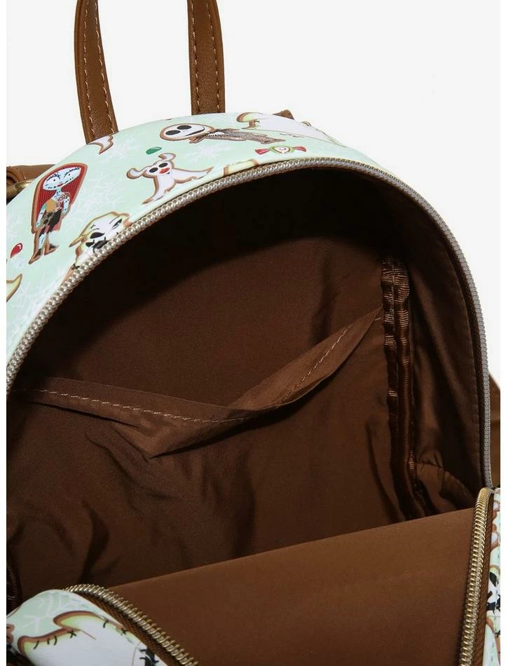 Making Christmas in Halloween Town? Make sure you have your essentials packed into this mini backpack! From The Nightmare Before Christmas, this mini backpack features an allover print of Jack, Sally, Oogie Boogie and Zero designed as sugary sweet cookies, with snowflakes, gumdrops and more in the background. Comes with a front zipper pocket, interior drop pocket and antique brass-tone hardware.