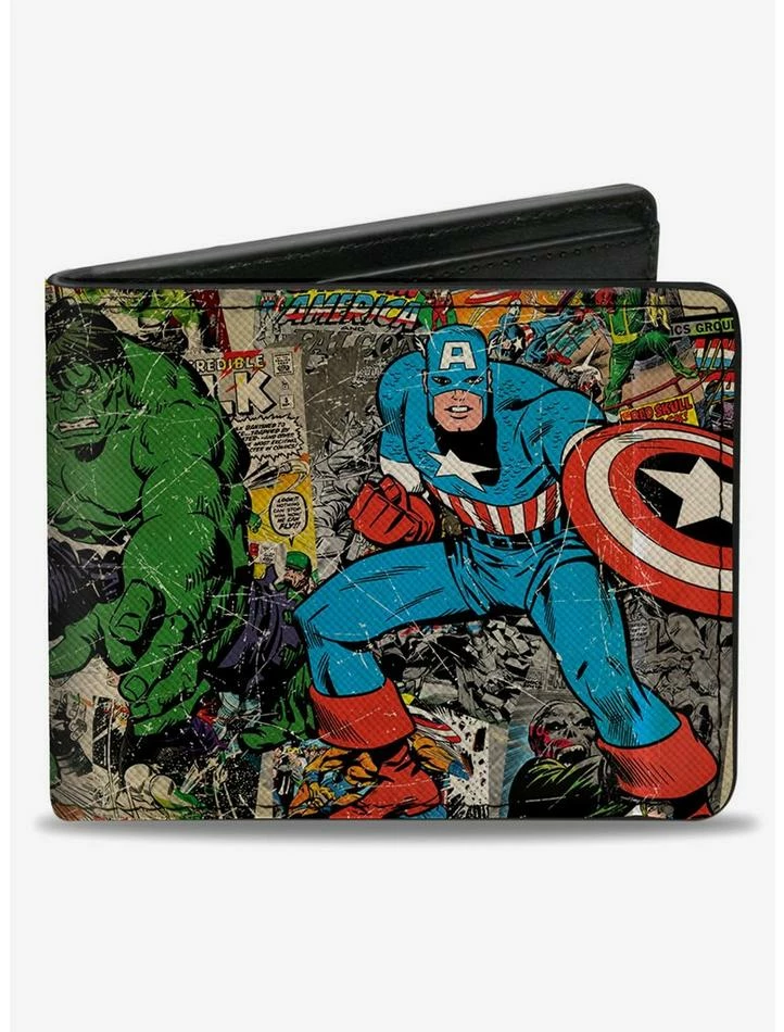 Promo ⭐ Marvel Avengers Comics Retro Avengers Group Pose With Comics Books Bifold Wallet ⌛