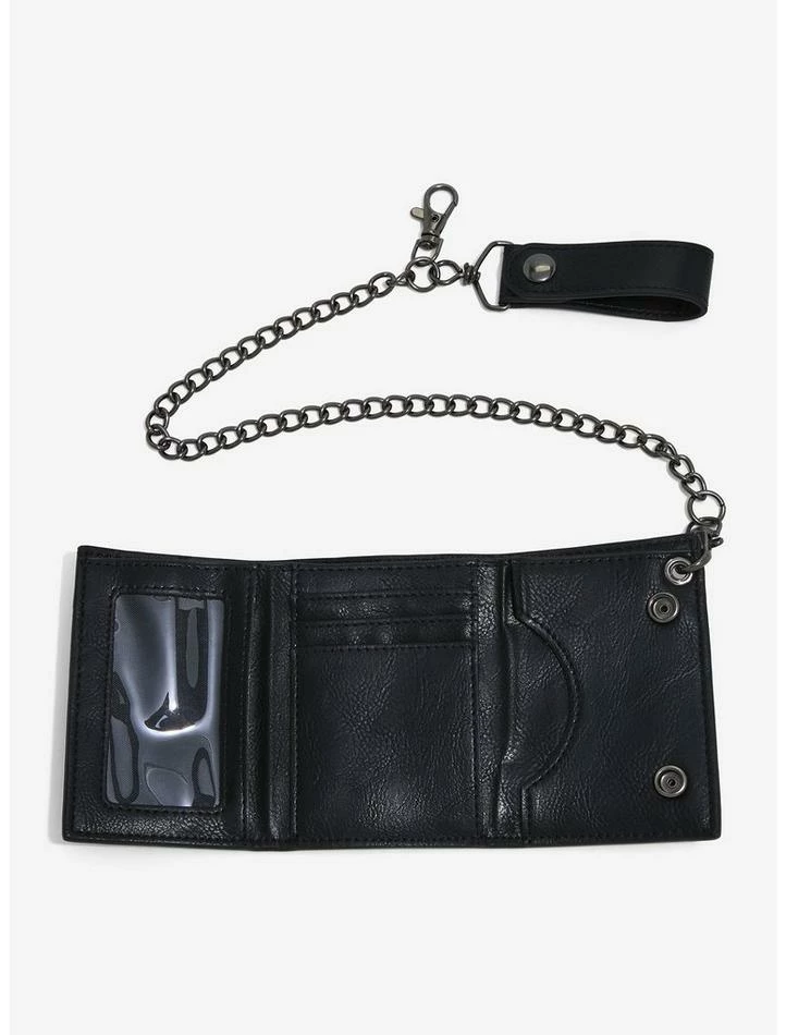 Have no fear! Your cash and essential cards will be safe with the protection from the Black Panther! From Black Panther: Wakanda Forever, this trifold wallet features the Black Panther sigil embossed on the front, and “Wakanda forever” in Wakandan on the back. Comes with 4 card slots, a clear ID display, a billfold and a removable chain strap.