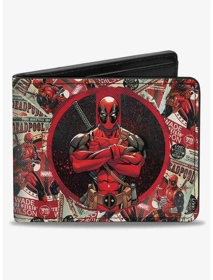 Cheapest ๐ Marvel Deadpool Arms Crossed Pose Badge Wade Vs Wade Poster Stacked Bifold Wallet โจ