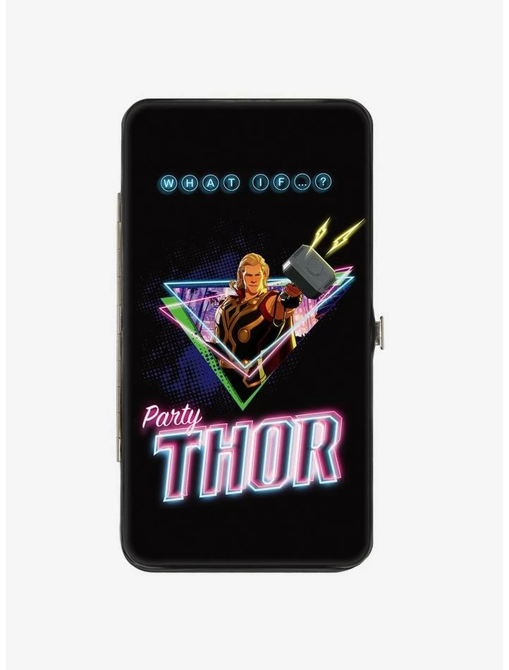 New โ๏ธ Marvel What If…? Party Thor 80S Neon ๐จ Hammer Icon Hinge Wallet ๐