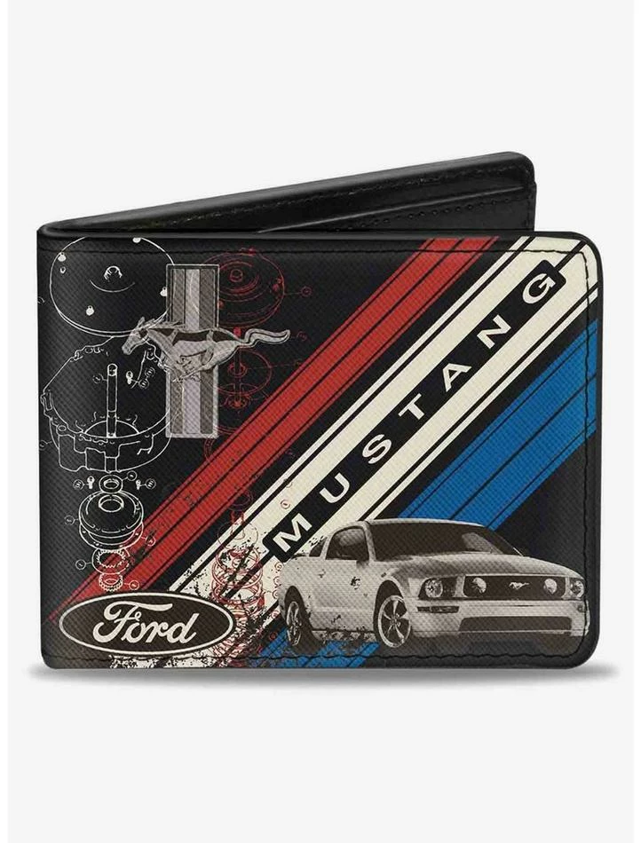 Best Pirce ๐ Mustang Tri Bar Logo Diagonal Stripe Blueprint Bifold Wallet โจ