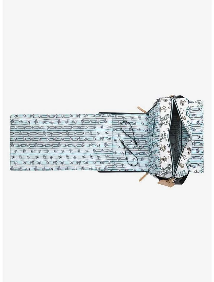 Styled on Petunia Pickle Bottom’s best-selling Boxy Backpack, the resulting diaper bag is designed for infinite play day fun. The Boxy Backpack includes a clever built-in changing station, internal organization pockets, multiple carrying options (backpack, cross-body and over your shoulder), and felt-lined zippered pocket that is easy to reach while the bag is on your back. Includes removable leather luggage tag embossed the words, “I Love You to Infinity & Beyond.”Β