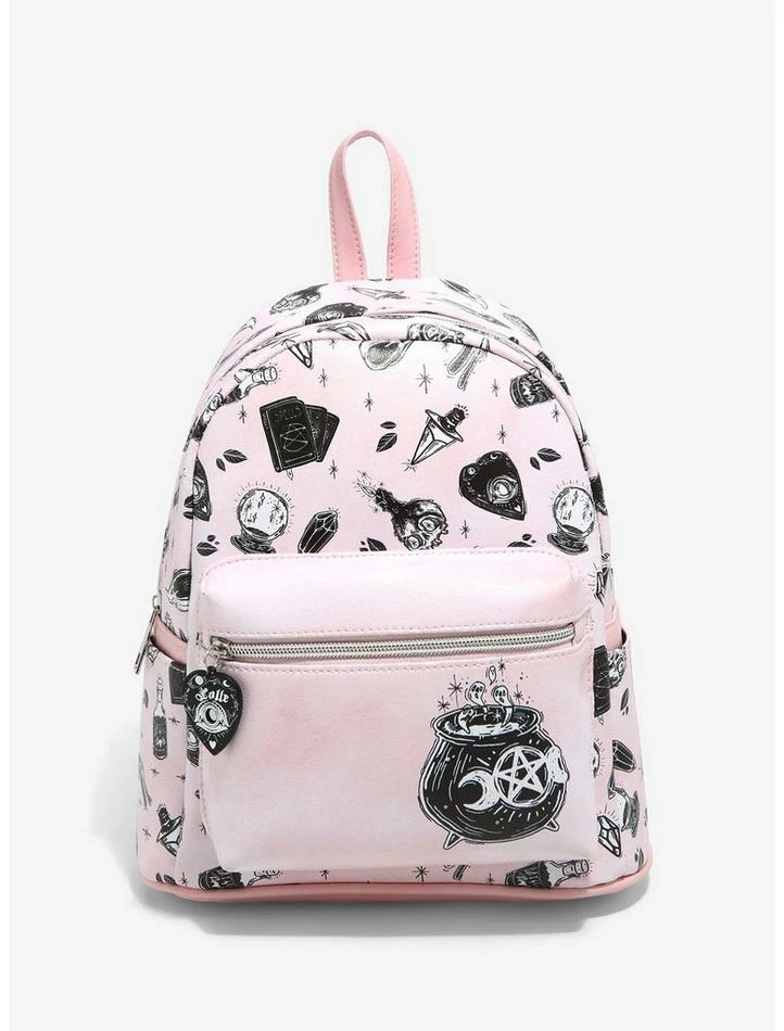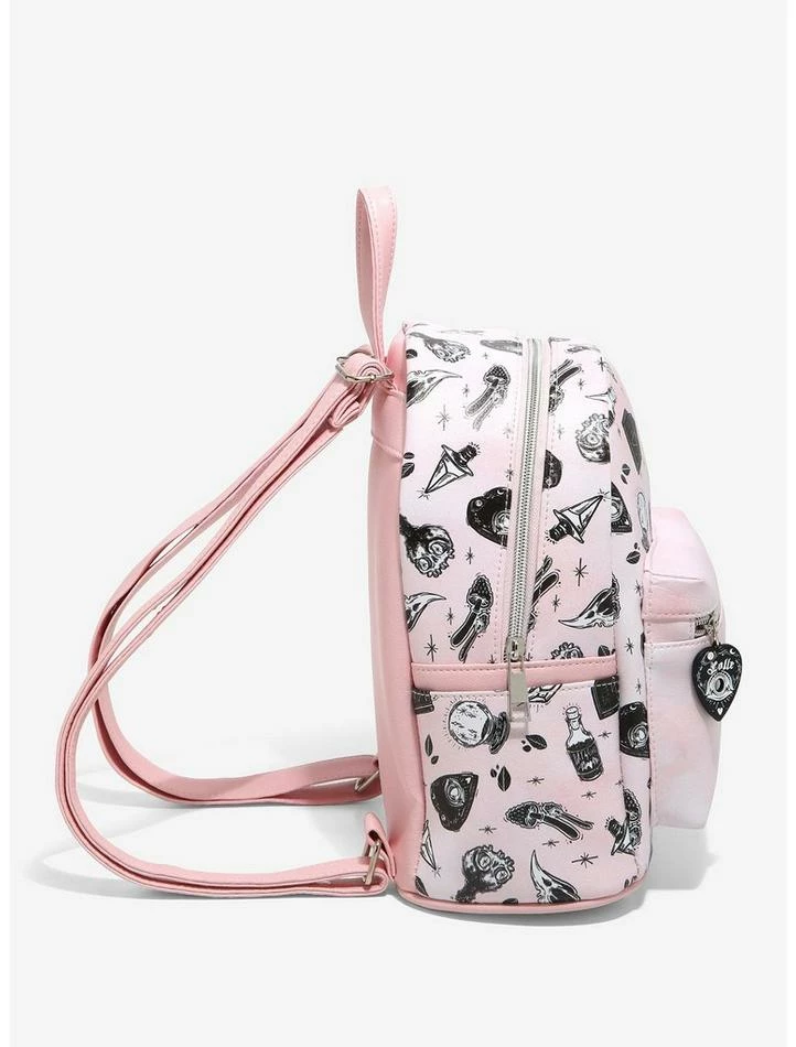 We’ve brewed up the perfect backpack to hold all of your potion essentials! This pink mini backpack by Lolle is perfect for any witch in your life, featuring an allover toss of witchy essentials, and a print of a bubbling cauldron on the front pocket. Comes with an enamel planchette charm on the front zipper, side pockets and interior drop pocket.