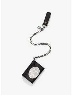 Β Is this a plague doctor or a bird masquerading as a plague doctor? We’re not sure, but we know we’re gonna stay away! This black trifold wallet features a plague doctor design. It comes with a clear ID display, card slots, a billfold and a detachable chain. Double snap-button closure.