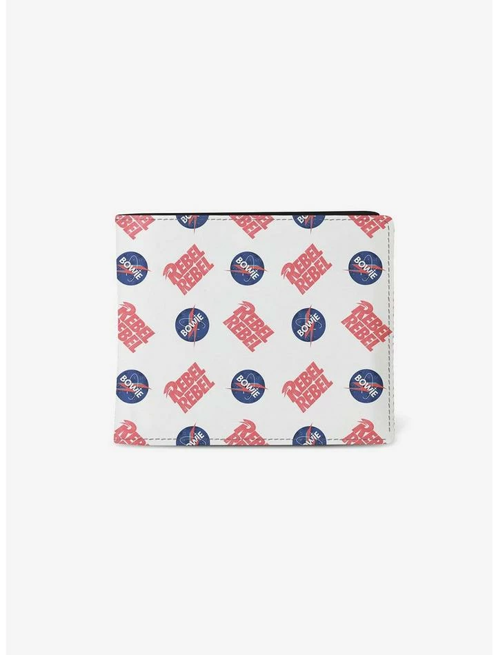 Keep your cash and cards organized in this classic David Bowie Rebel Rebel wallet. Each wallet features a secure coin pocket with zipper, spacious cash and receipt pocket, and five close-fitting card slots. Crafted from extremely durable PU material by Rocksax!