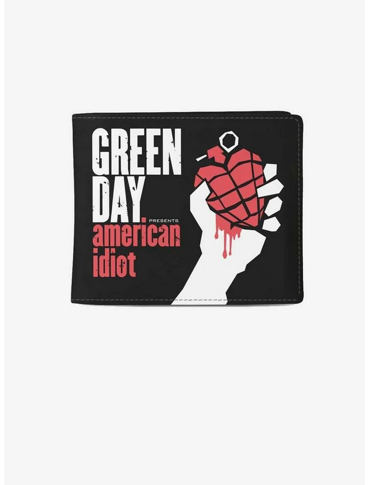 Keep your cash and cards organized in this classic Green Day American Idiot wallet. Each wallet features a secure coin pocket with zipper, spacious cash and receipt pocket, and five close-fitting card slots. Crafted from extremely durable PU material by Rocksax!