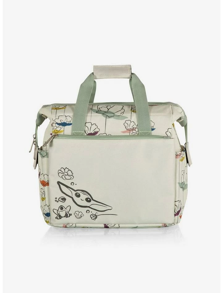 This is it: a portable, multi-purpose Star Wars lunch box featuring a charming floral take on the Child. The Child Floral OTG Lunch Cooler has space and durability to satisfy even a Grogu-sized appetite. This expandable lunch tote includes a dry compartment for shelf items and a cooler on the bottom to keep things fresh. Velcro side straps allow this portable cooler to accommodate even more items while still looking sleek and stylish.