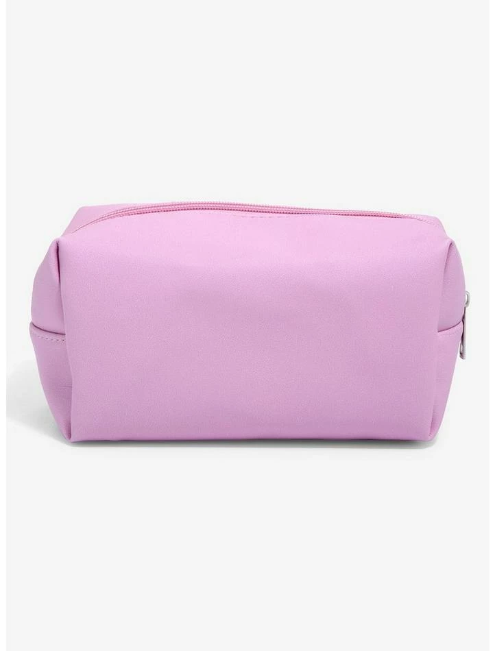 Keep it kawaii. Pack your beauty essentials in this pink faux leather makeup bag. Features “Strawberry Milk” text design. Top zipper closure.