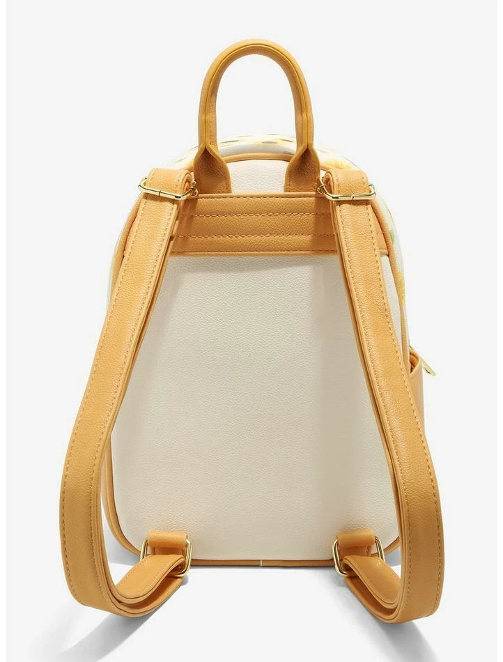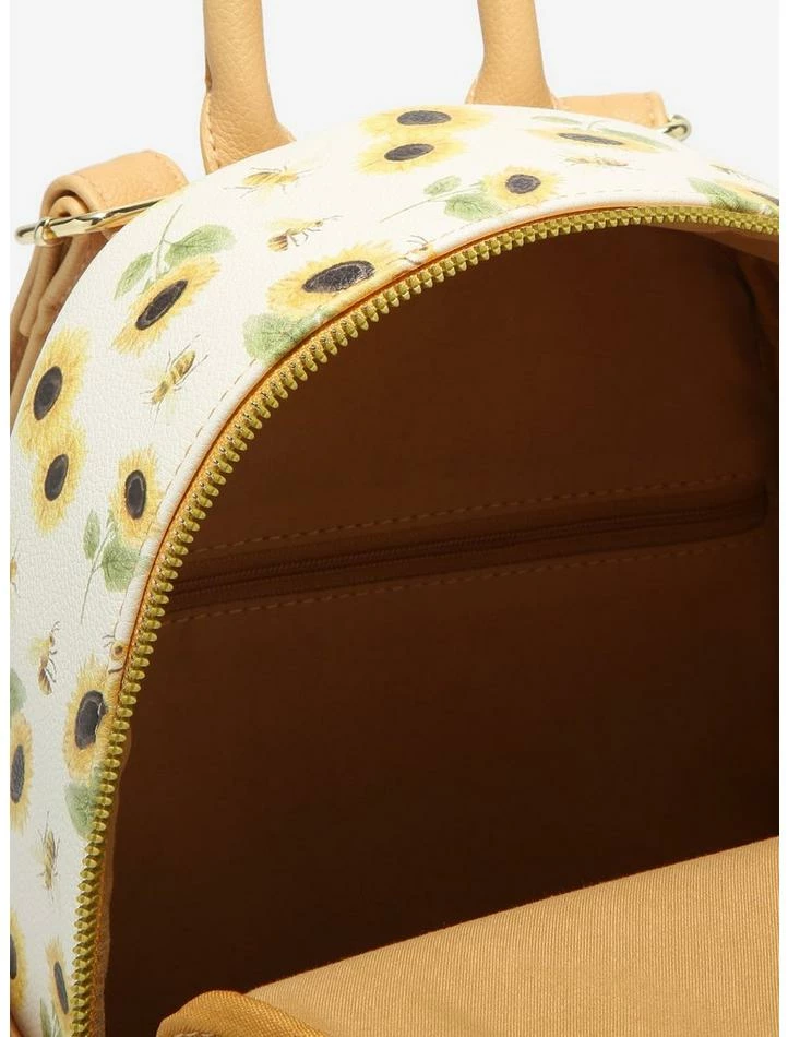 Looking for the perfect bag to fit your honeycore aesthetic? We got you! This cream and yellow mini backpack features a toss print of sunflowers and bees, with a graphic of a pot of honey and more flowers on the front zipper pocket. Comes with side and interior zipper pockets, and a gold-tone bee zipper pull. Complete with adjustable straps, top carrying handle and top zipper closure.