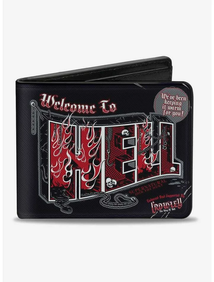 Best Sale 🎉 Supernatural Welcome to Hell Flames Skulls Bi-fold Wallet 👍