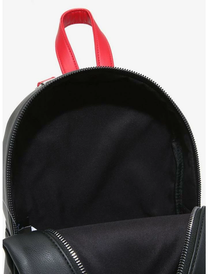 Running away from a certain chainsaw-wielding man?Β Pack all of your essentials in this mini backpack, and whatever you do, doΒ notΒ head towards that old slaughterhouse! This mini backpack features a close-up of Leatherface up top and an eerie quote in bloody red, plus The Texas Chainsaw MassacreΒ title on the front zipper pocket. Comes with a chainsaw zipper charm, adjustable straps and silver-tone hardware.
