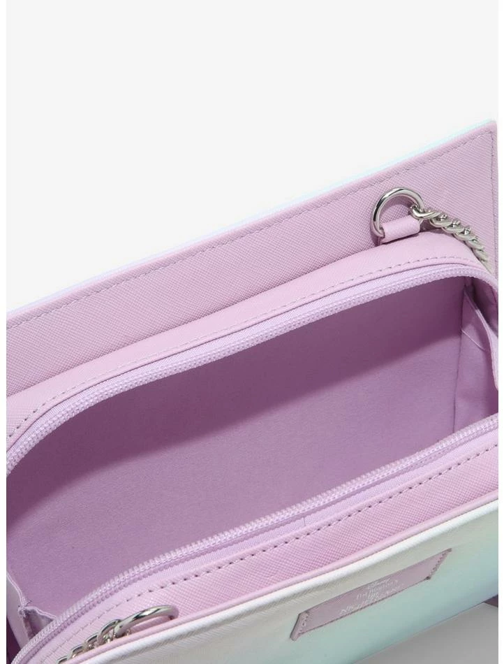 We sense there’s something in the wind… or maybe it’s in the cards. Either way, Jack Skellington is here to bring some frightful fun to your accessories! This crossbody bag has a pastel ombré design and features a tarot card-inspired print of Jack on the front. Complete with a chain and faux leather crossbody strap and a top zipper closure.